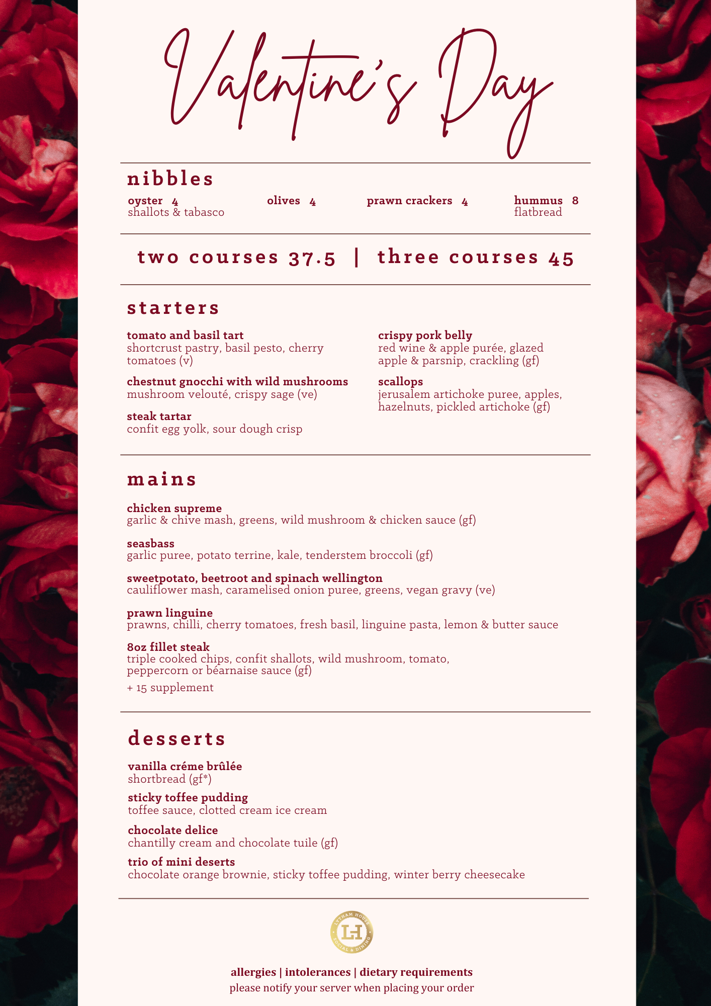 dessert menu